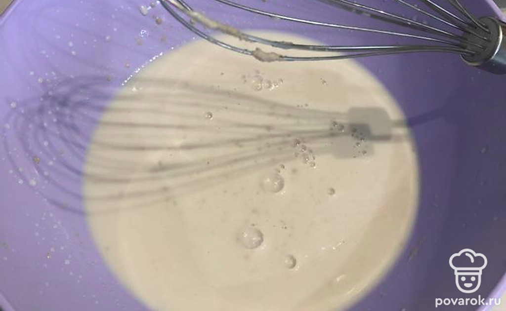 Подогрейте молоко до 40 градусов, добавьте в него сахар и дрожжи. Тщательно перемешайте и оставьте на 10 минут.