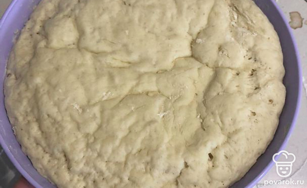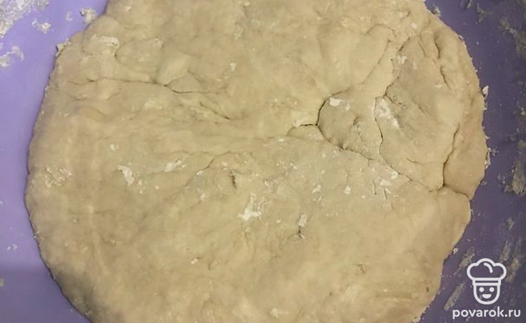 Постепенно вводите муку. Первые 2 стакана можно размешать венчиком. Далее необходимо тщательно вымесить тесто руками. Оно не должно прилипать к рукам, но должно быть очень упругим. Затем накройте тесто полотенцем или пленкой и уберите в теплое место на 1 час.