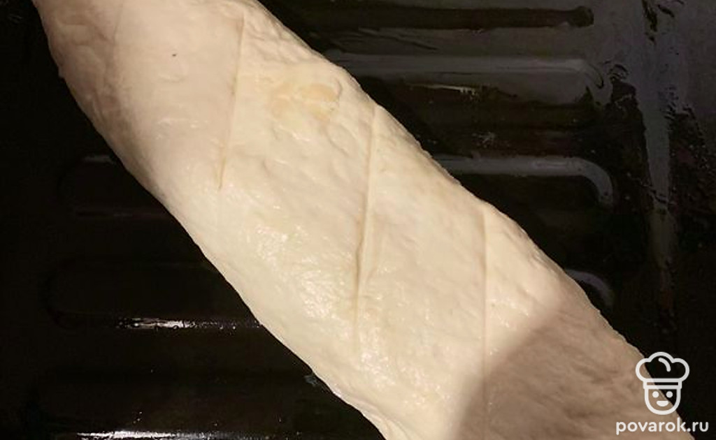 Как тесто подойдёт, увеличится в размере в 2-3 раза, сформируйте батон, сделайте надрезы, оставьте ещё минут на 20.