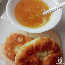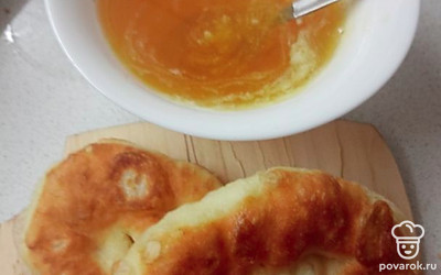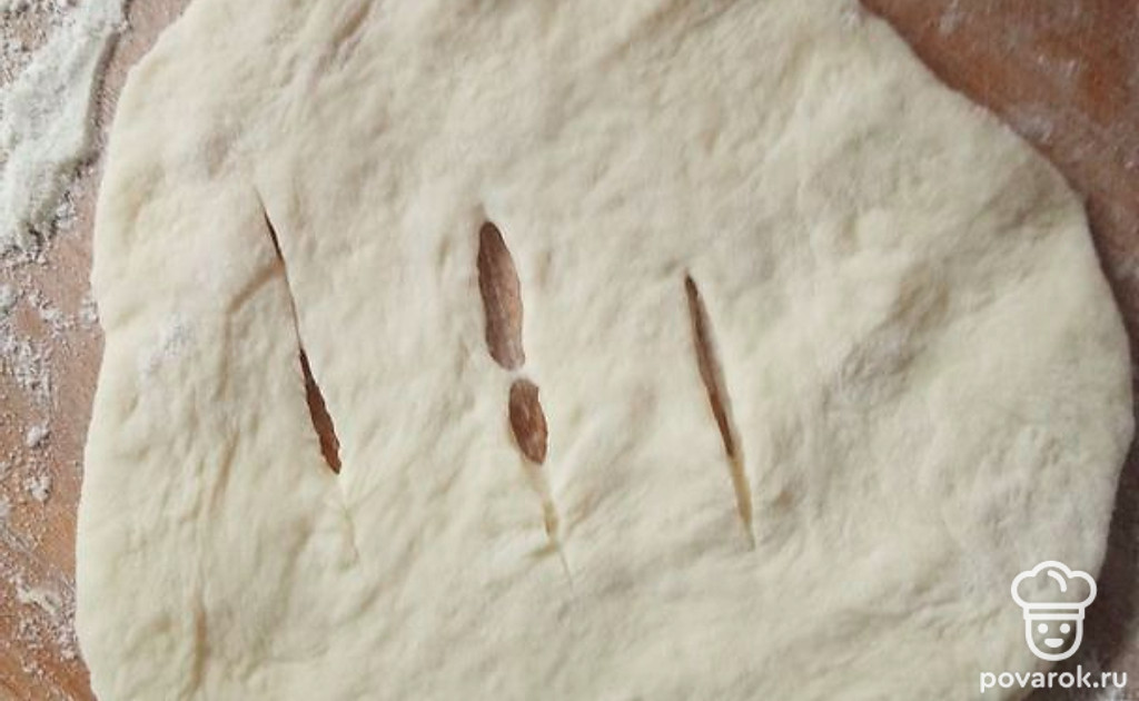 Разделить тесто на несколько частей, каждую часть раскатать в круг и сделать небольшие надрезы. Обжарить на растительном масле с двух сторон.