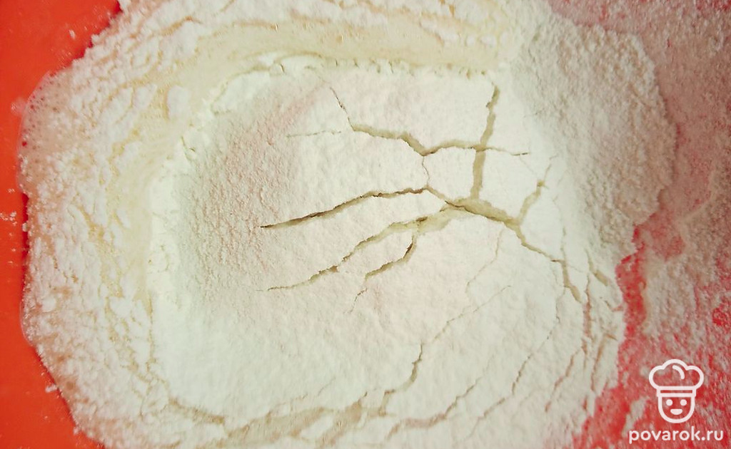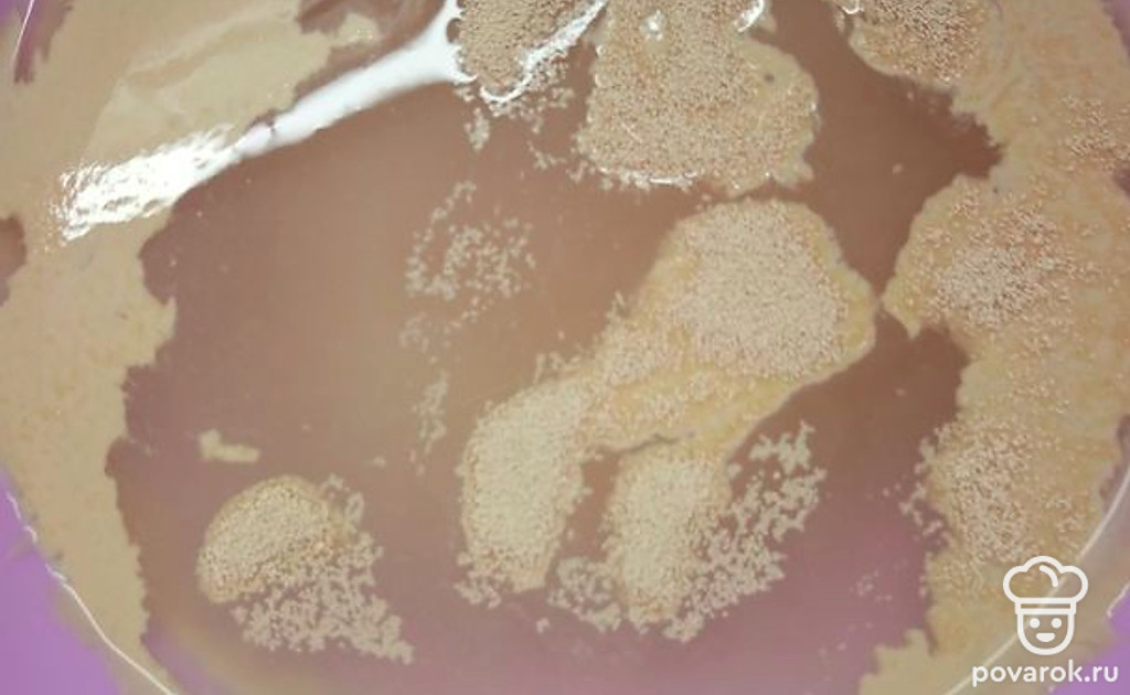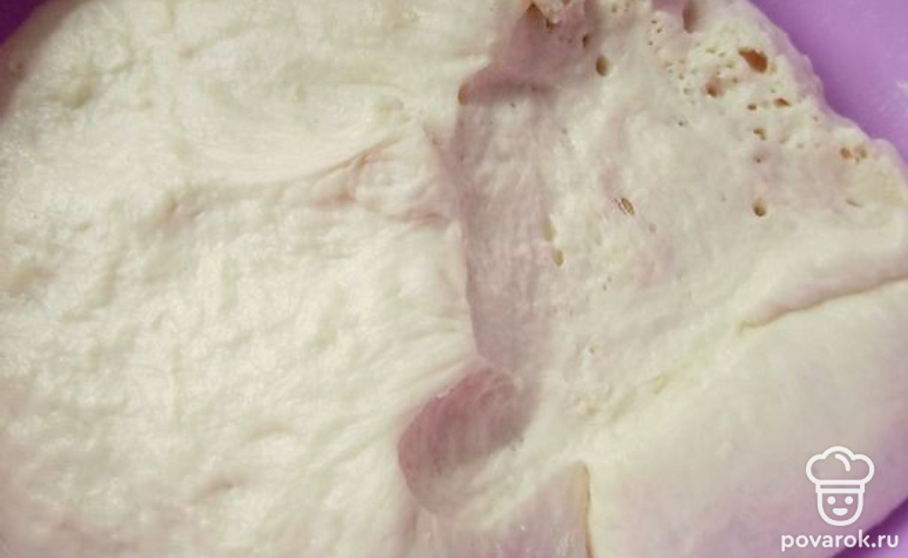 Добавить муку и 3 столовые ложки масла, соль и сахар, замесить тесто.