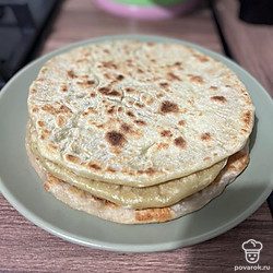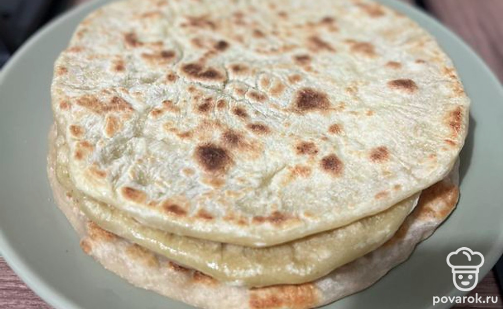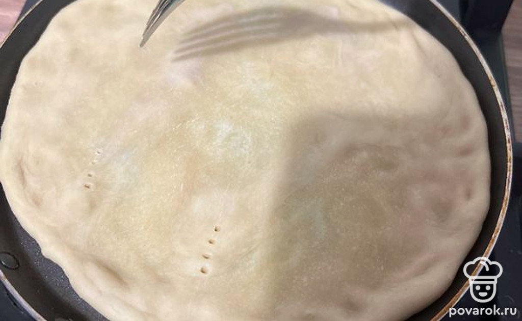 Отрежьте от теста кусочек, раскатайте и положите на разогретую сковороду. Сделайте в лепешке несколько проколов вилкой. Обжарьте лепешку с обеих сторон.