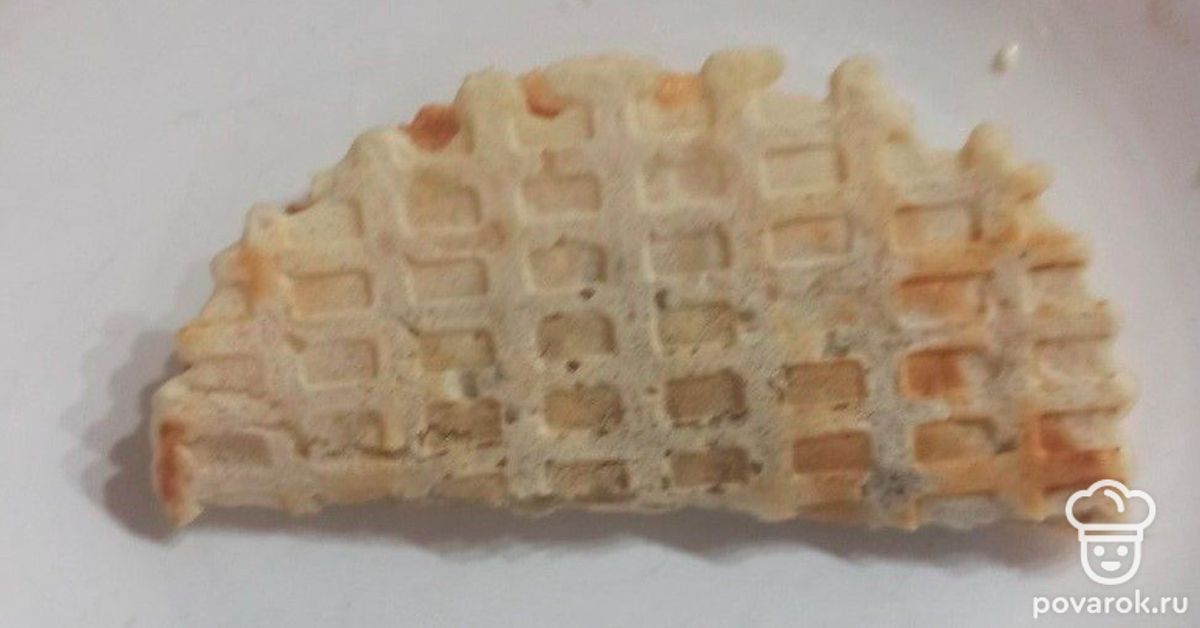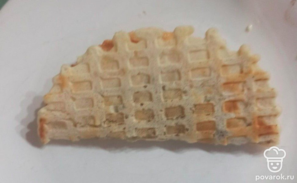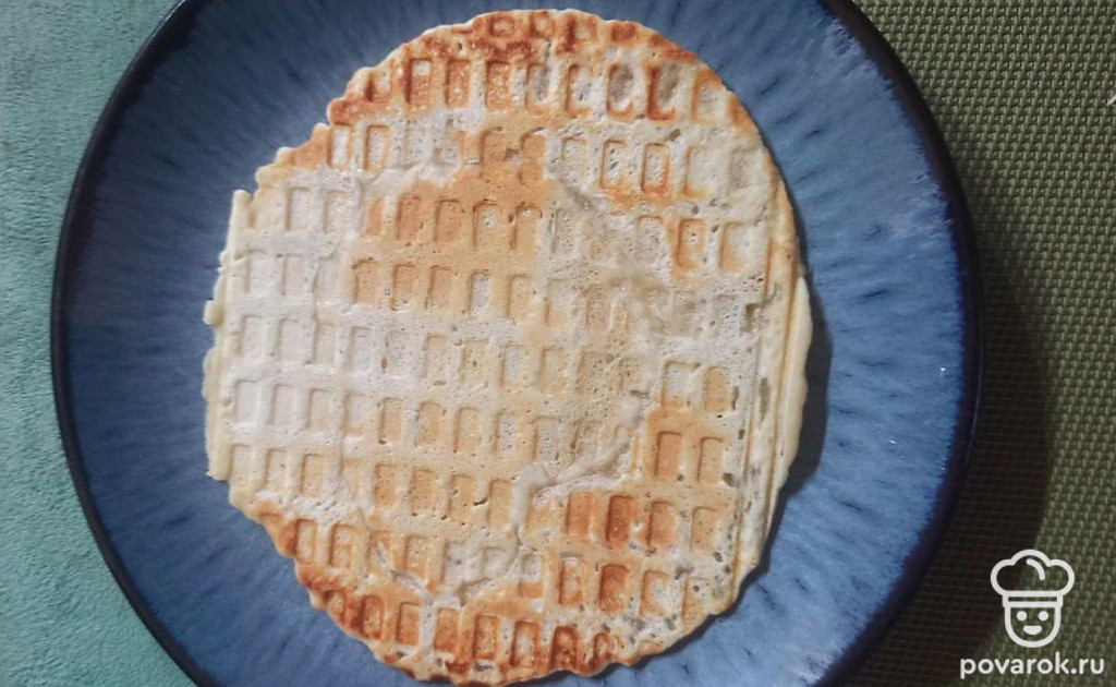 Выпекайте в электровафельнице 5 минут при температуре 200 градусов.