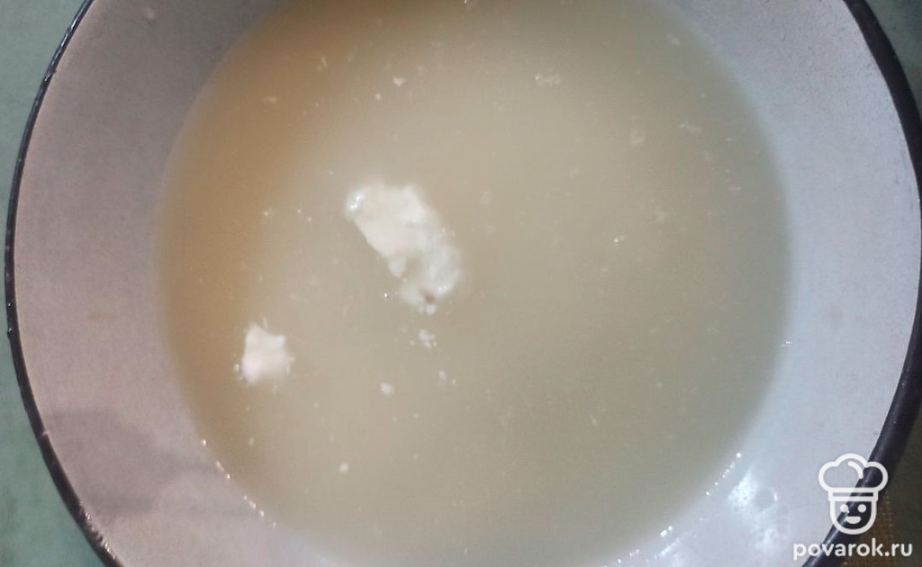 Смешайте 100 грамм закваски и 1 литр картофельного отвара.
