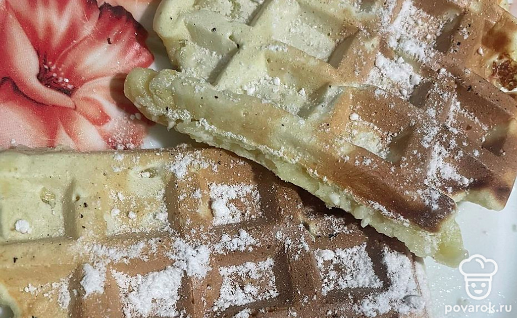 Пышные вафли с нежным творожным вкусом. Подходят не завтрак, прекрасны со сметаной.