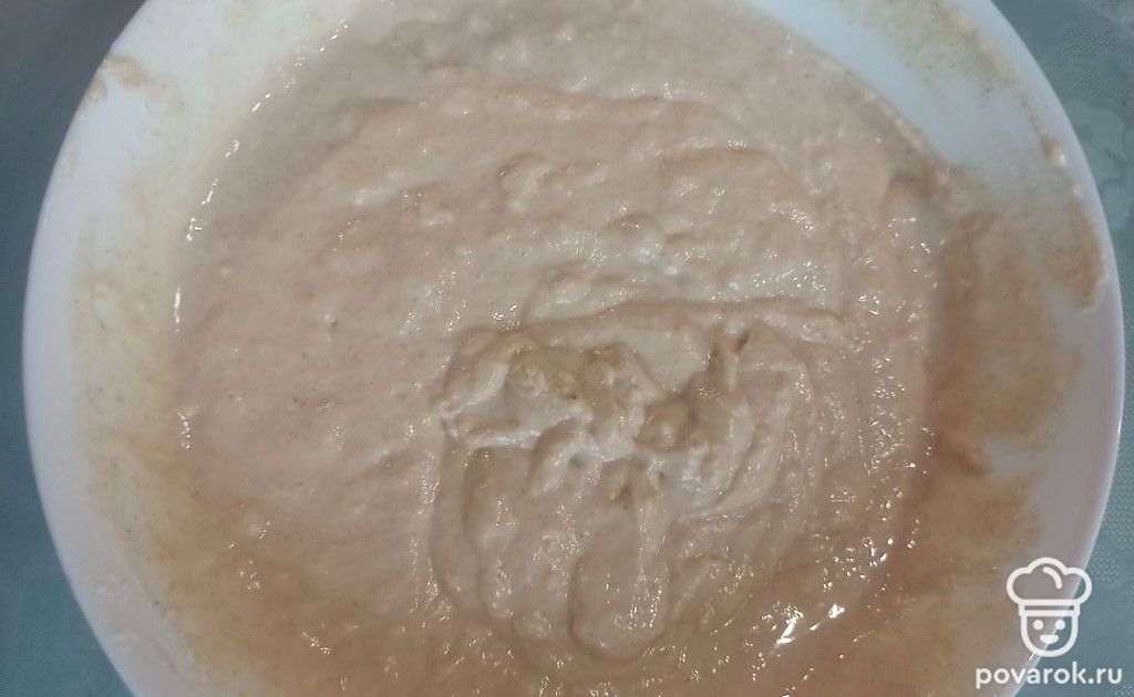 Смешайте закваску, разрыхлитель, муку, яйцо, кефир и сахар.