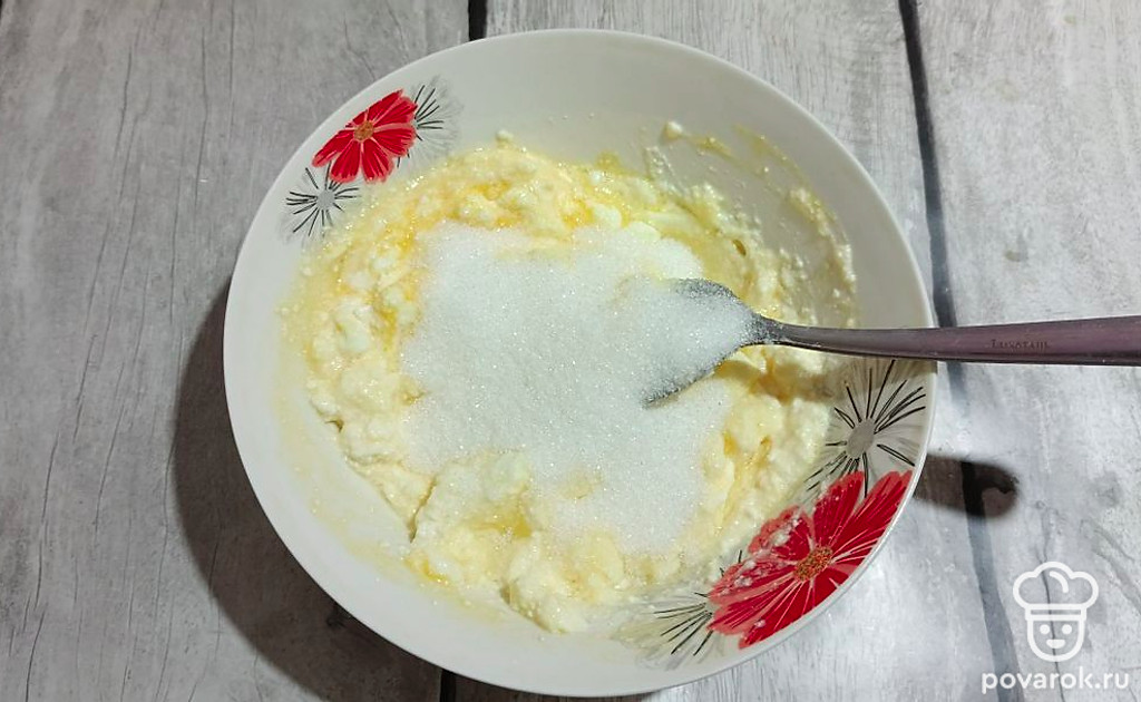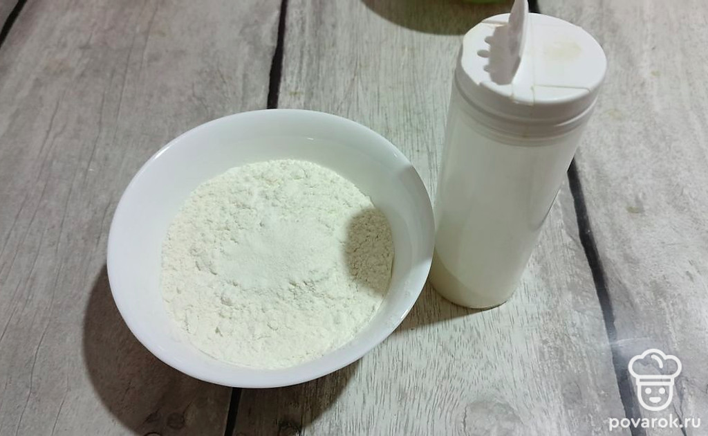В муку добавьте разрыхлитель для теста и перемешайте.