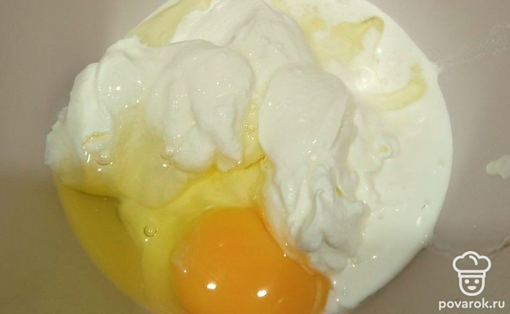 В глубокую миску разбейте одно яйцо. Добавьте сметану.