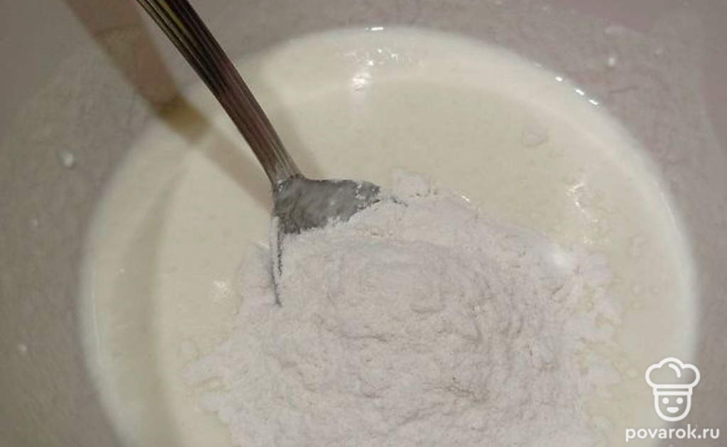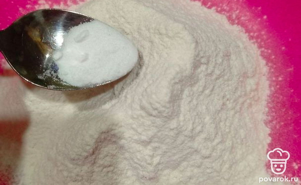 Смешайте все сухие ингредиенты: муку, соль соду.