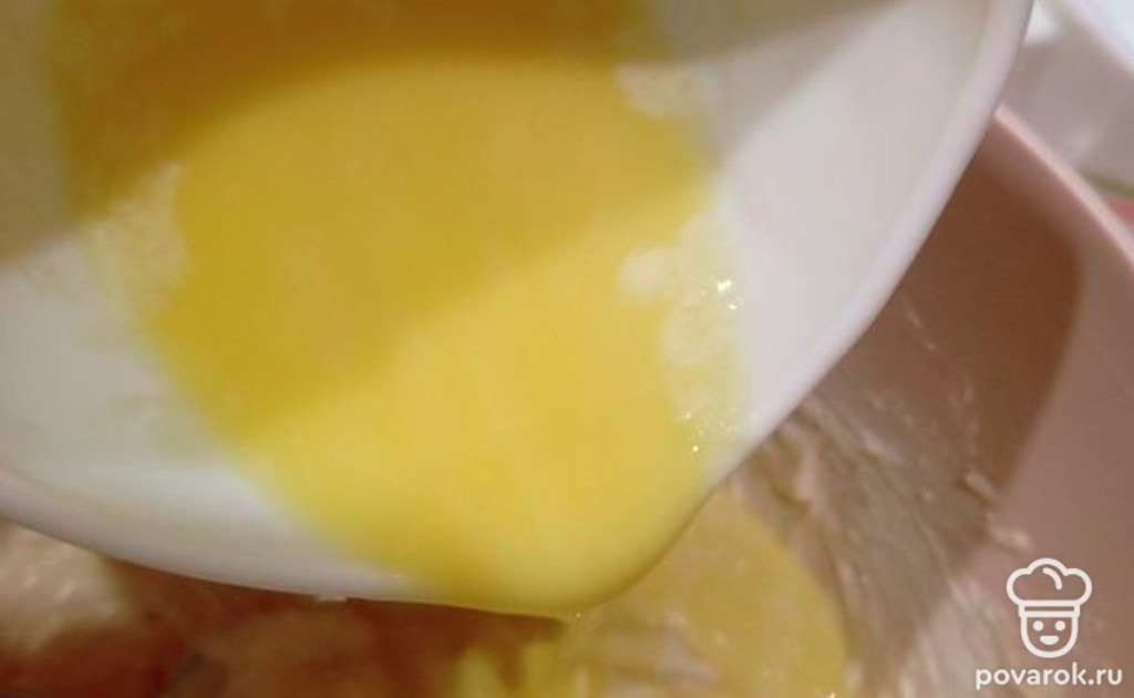 Растопите сливочное масло. Отправьте все в тесто. Хорошо перемешайте.