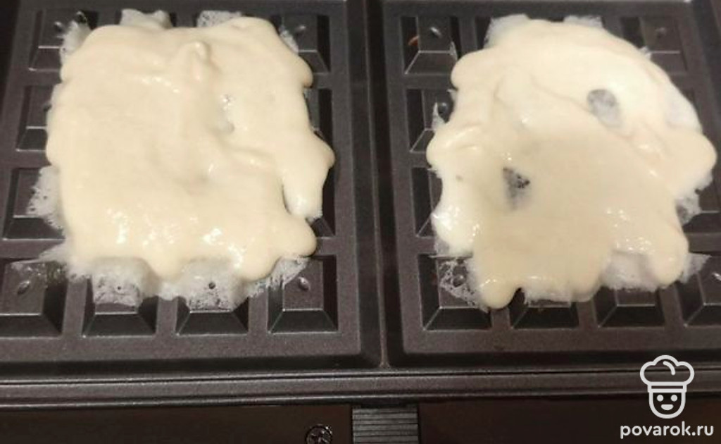 Выпекайте вафли в раскаленной вафельнице до готовности.