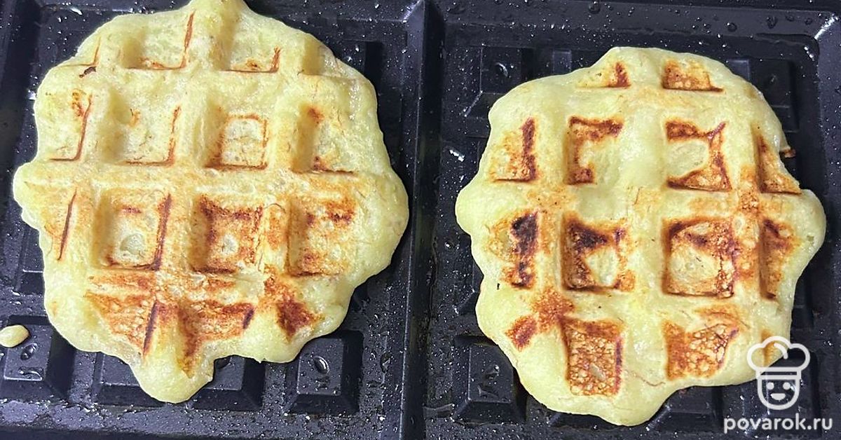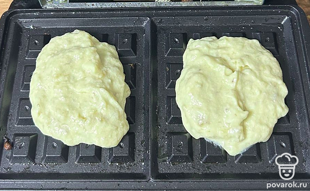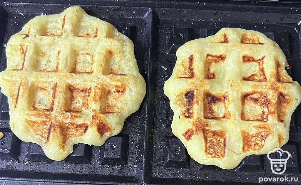 Нагрейте вафельницу, смажьте маслом. Выложите по 1-2 ложке теста. Выпекайте до золотистой корочки