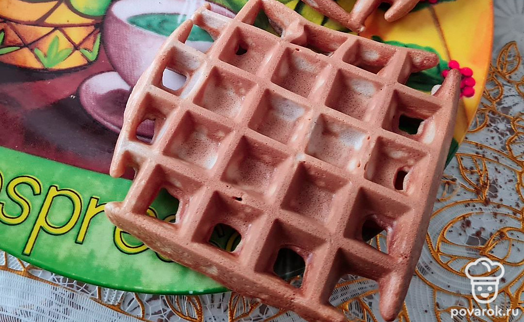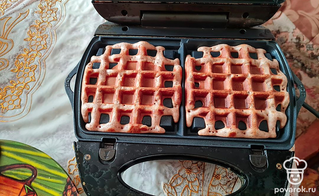 Возьмите маленький половник и налейте немного теста в вафельницу.