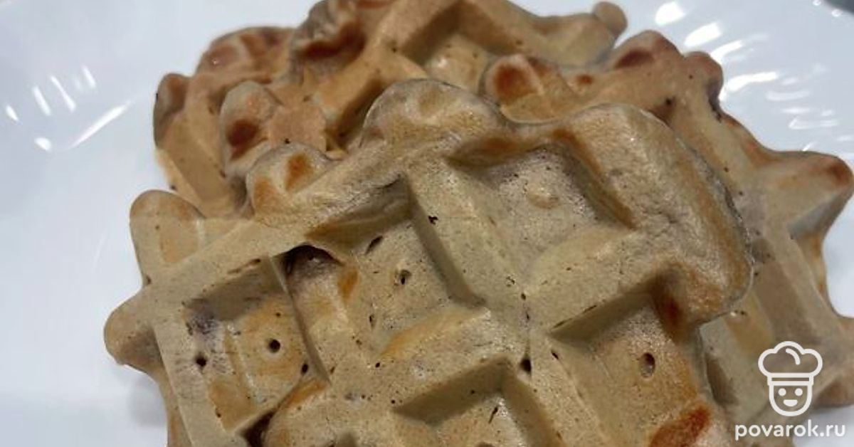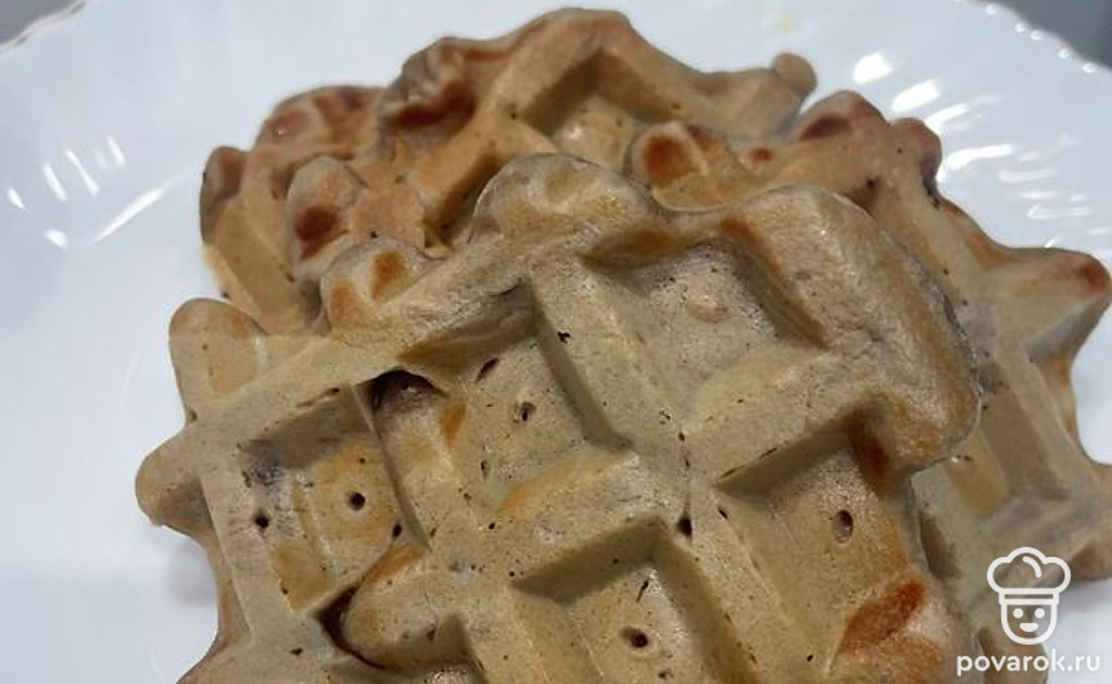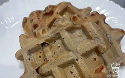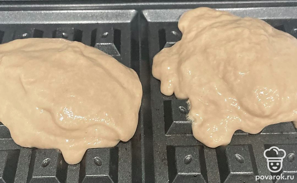 Готовое жидкое тесто по ложке выложите в вафельницу. Выпекайте до готовности.