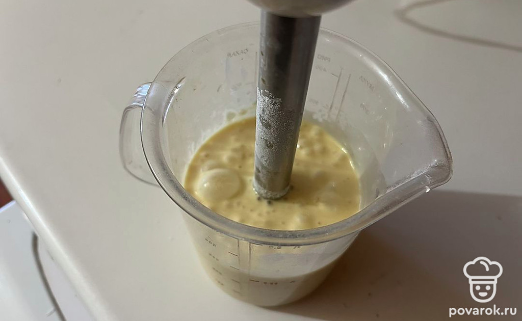Перемешайте все ингредиенты миксером или пробейте блендером. Это нужно для того, чтобы тесто было без комочков и «напиталось» кислородом.