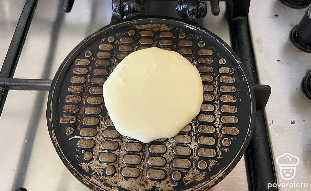 Разогрейте вафельницу на среднем огне (с обеих сторон).