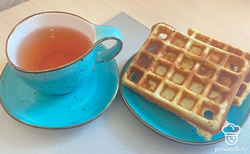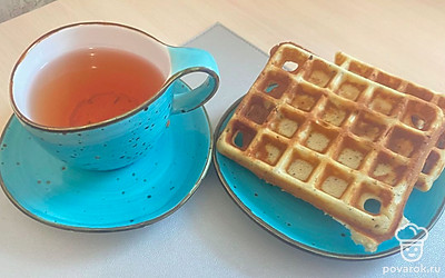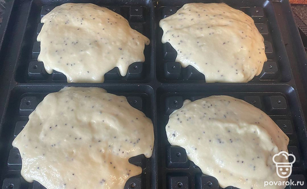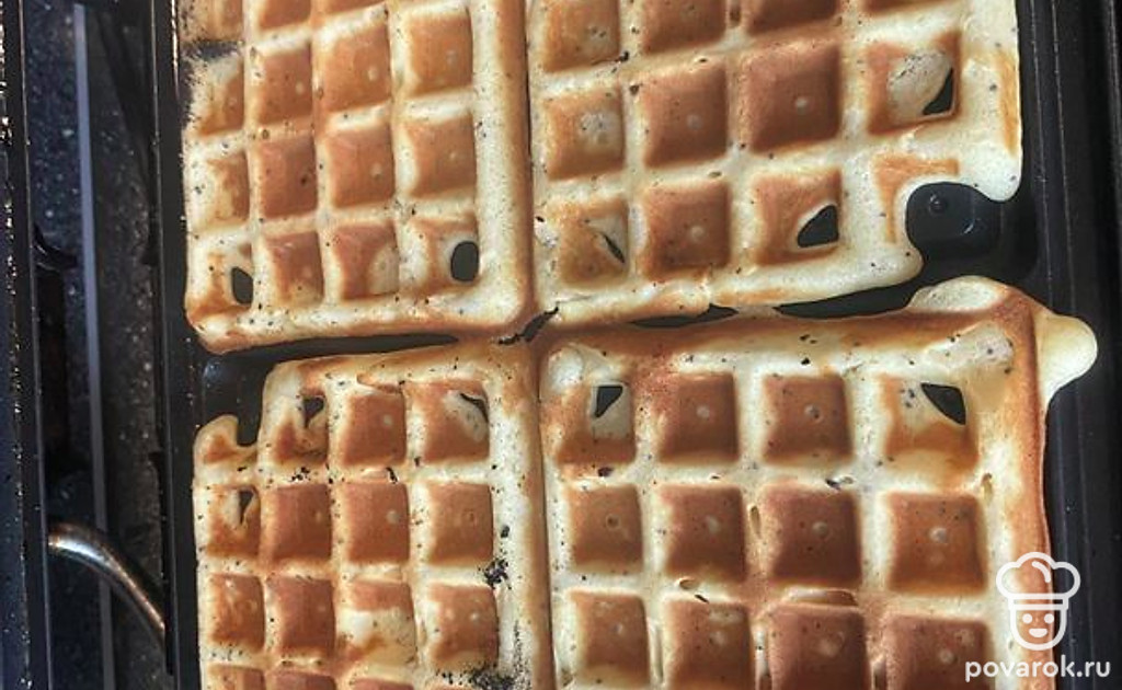 Вафельницу разогрейте, выложите в ячейки тесто и выпекайте в течение 3-4 минут.
