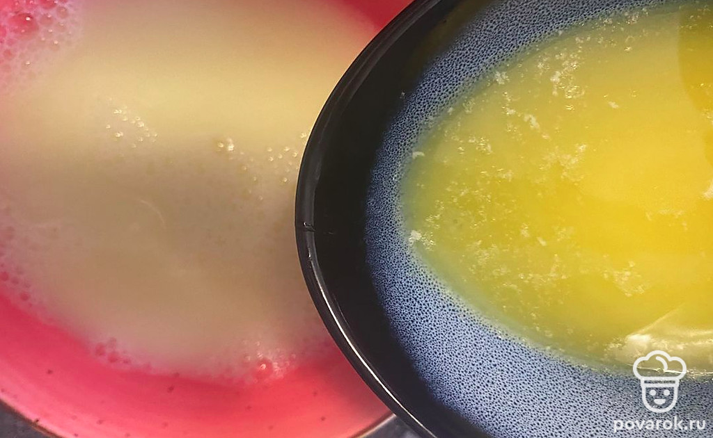 Сливочное масло растопите на водяной бане (или в микроволновке).