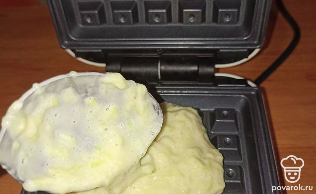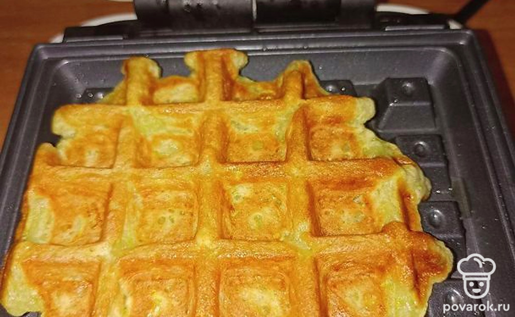 Выпекаем 7-10 минут. Снимаем вафлю с пластины силиконовой или деревянной лопаткой.