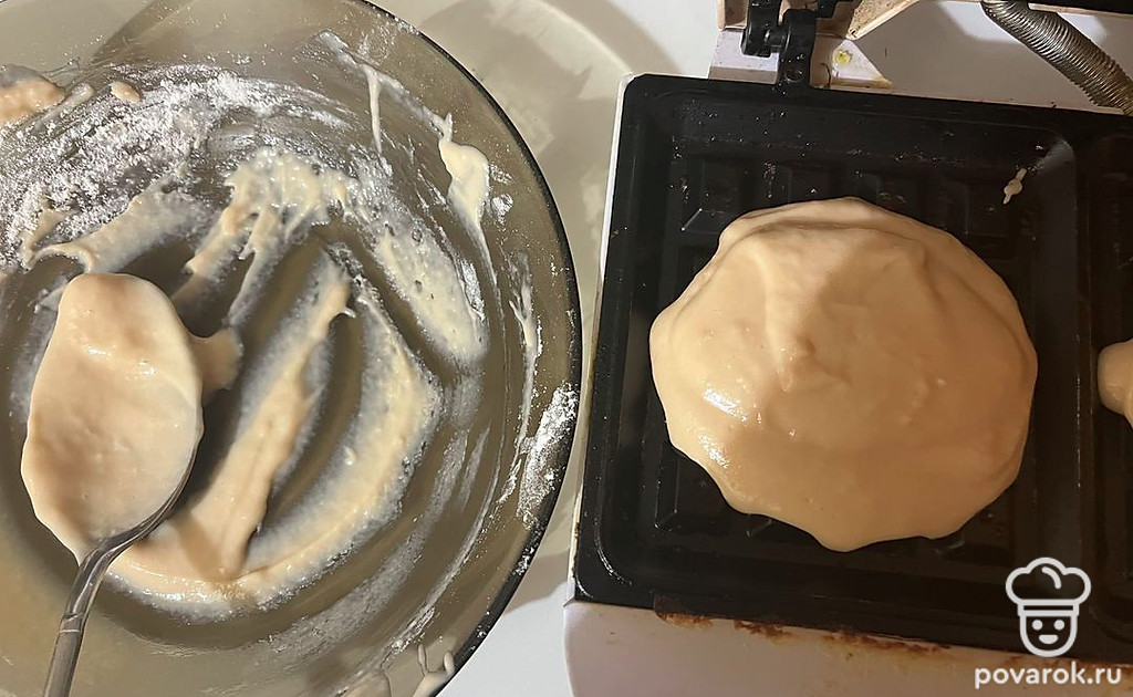 Приготовление творожных вафель будет не так муторно, если вместо творога использовать уже готовую творожную массу.