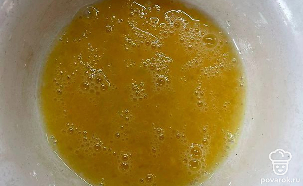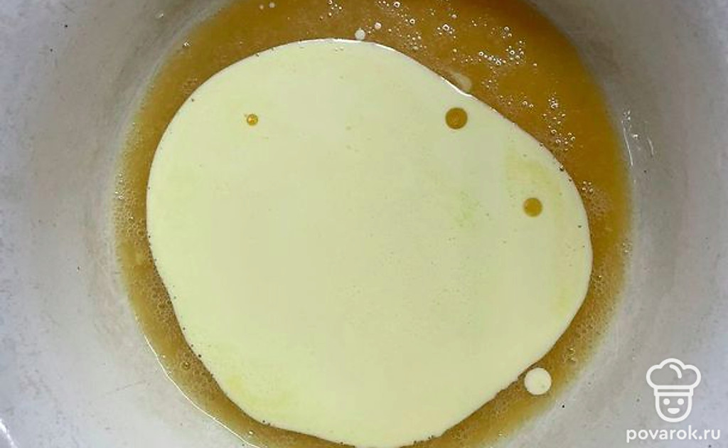 Добавить растопленное сливочное масло. Перемешать.