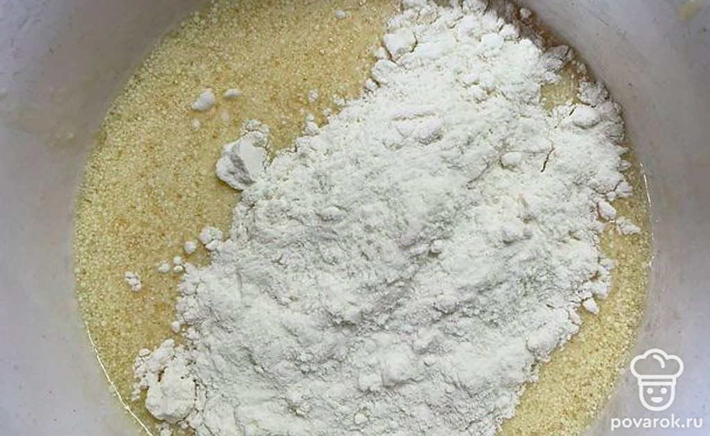 Добавить муку и перемешать.