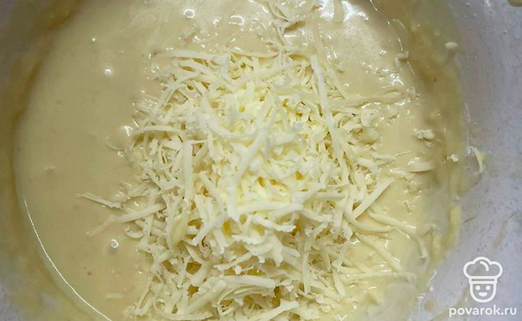 Натереть сыр, перемешать.