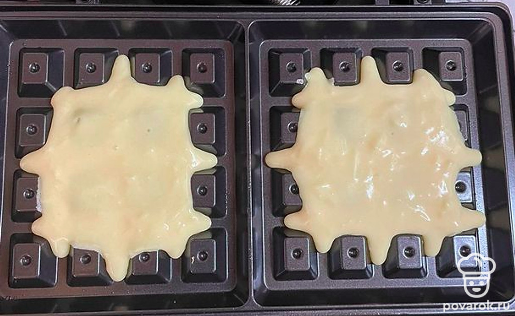 Выложить в вафельницу, жарить 2-3 минуты.