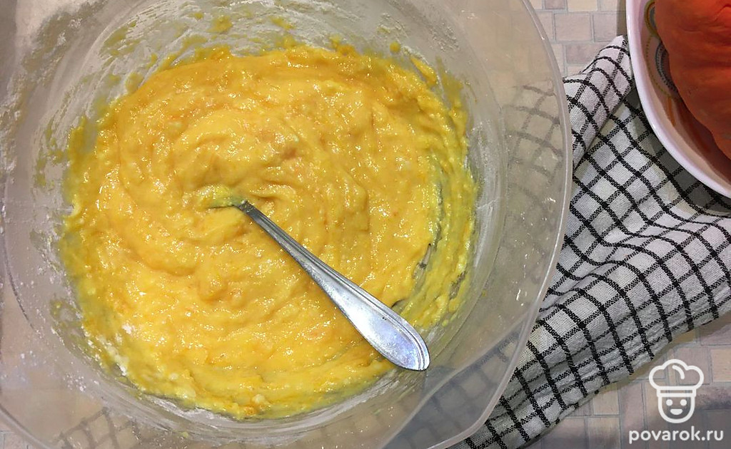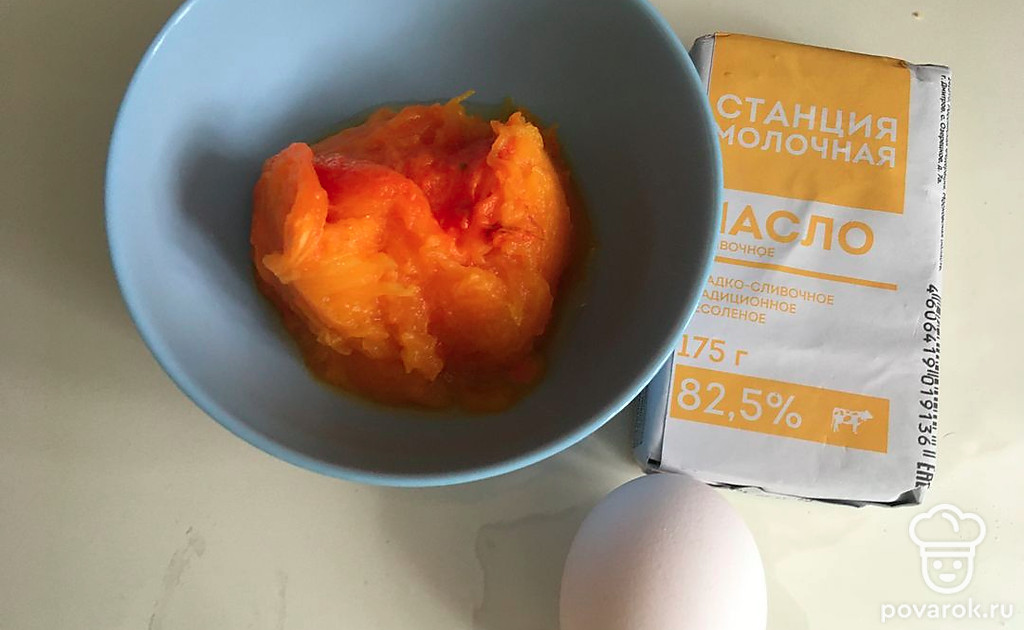 Тыкву разрезать пополам и запечь в духовке при температуре 170 градусов около 40 минут, до мягкости. Ложкой отделить мякоть, 250 грамм, размять вилкой или блендером.