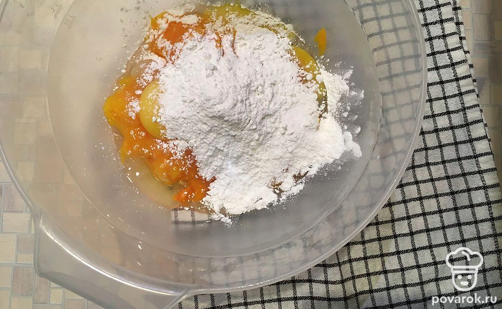 Ввести муку, при необходимости можно добавить 1 столовую ложку пшеничной муки.