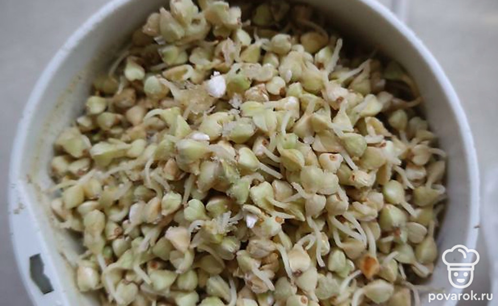Зеленую гречку заранее замачиваем или проращиваем, как у меня на фото.