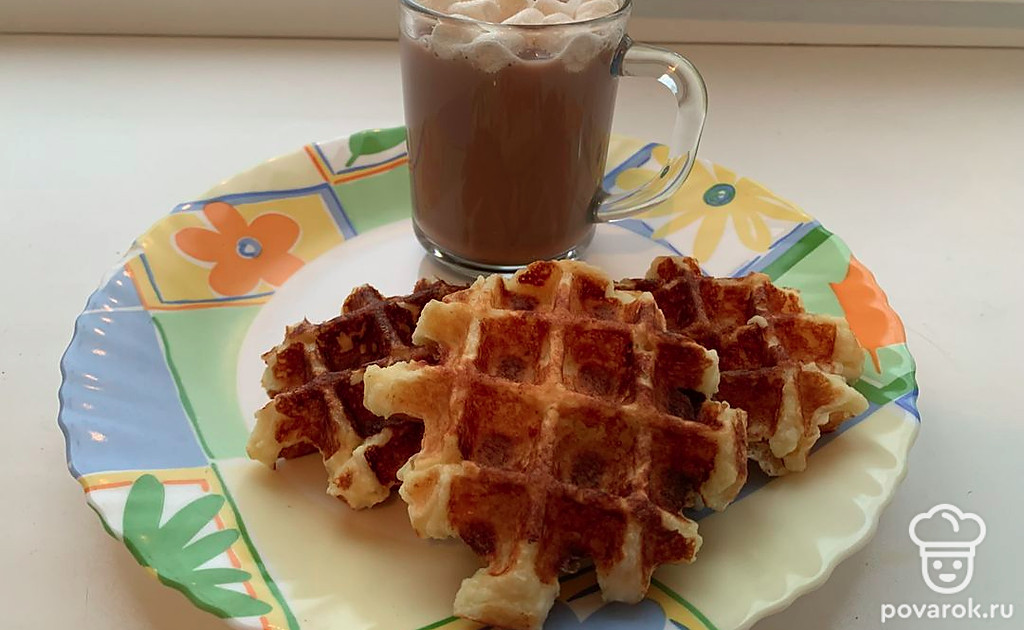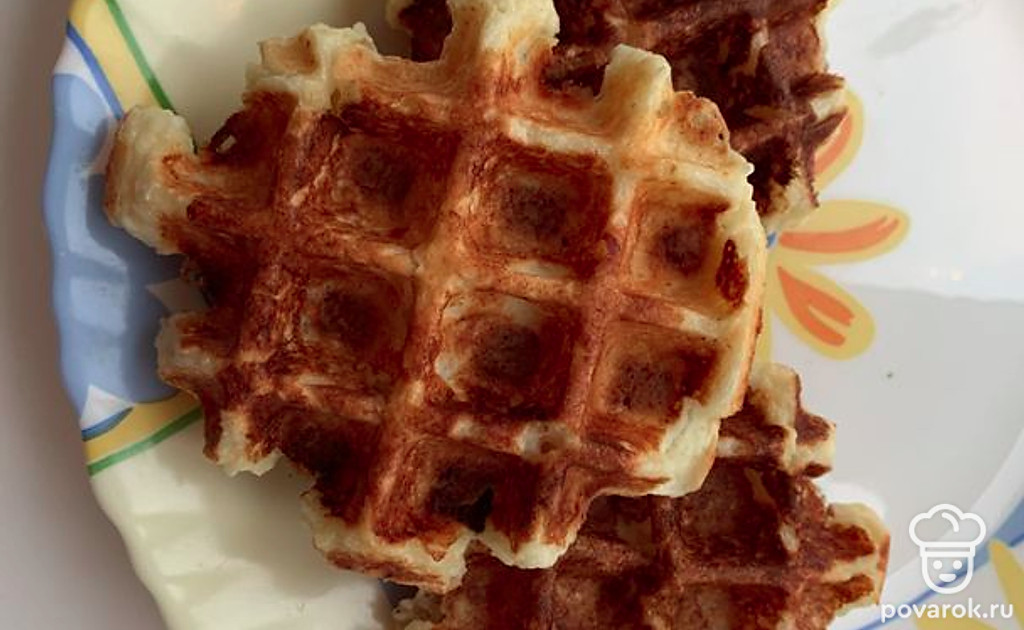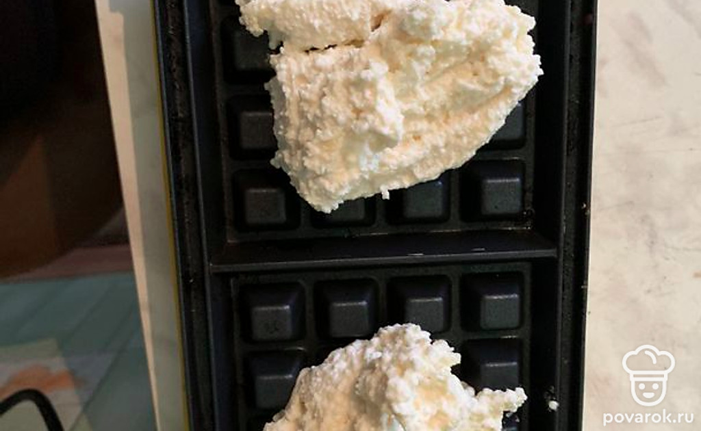 В вафельницу загрузить массу (по полной с верхом столовой ложке), закрыть и не открывать несколько минут. Я не смазываю вафельницу маслом, и ничего не пригорает. Главное, выдержать время, пока вафля «схватится».