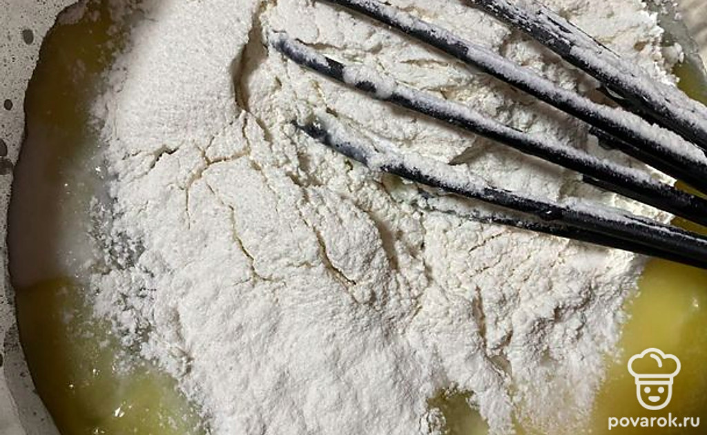 Вводим оставшиеся ингредиенты и муку, до состояния густой сметаны.