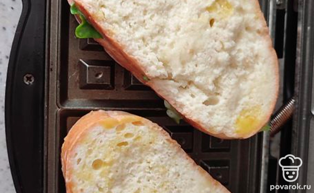 Выкладываем батон в вафельницу, накрываем и ждем примерно 7-8 минут, пока батон не схватится.