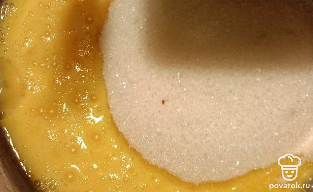 Охладите масло, добавьте сахар, перемешайте.