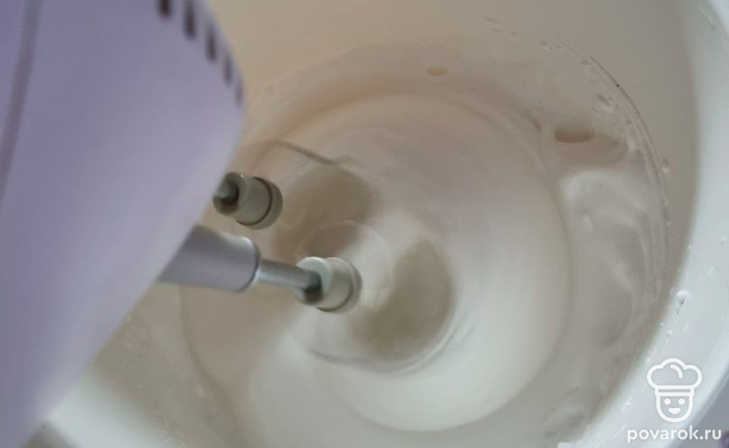 Белки взбить с сахаром.