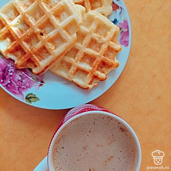 Вафли идеально подходят к кофе. Отлично сочетаются со сметаной или сдадким джемом, конфитюром. Приятного аппетита!