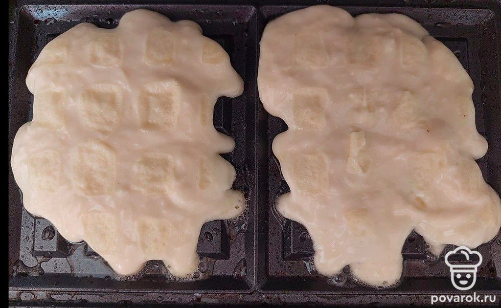 Смазать пластины растительным маслом. Выложить тесто. По 1-1,5 столовые ложки на панель.