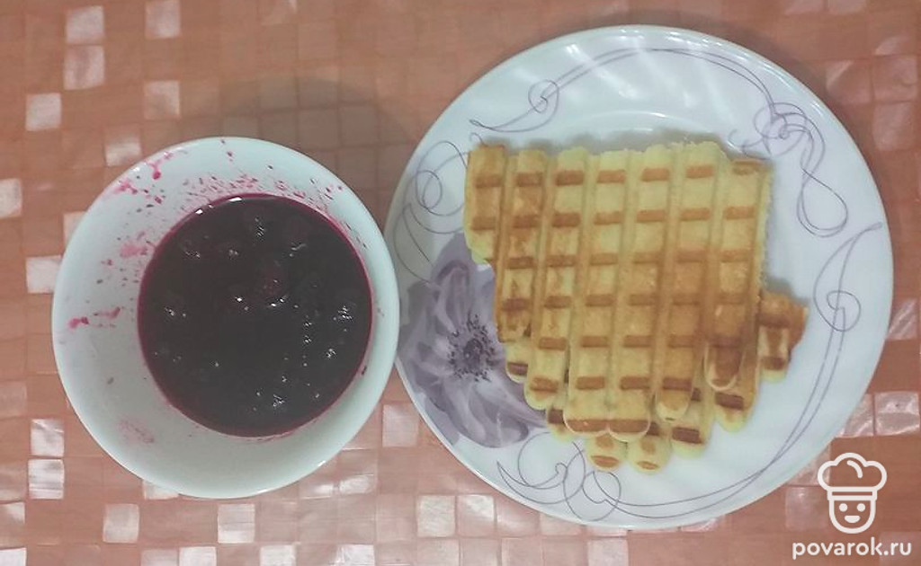 Готовые вафли подавать к чаю с вареньем, сгущенкой или как самостоятельное блюдо.