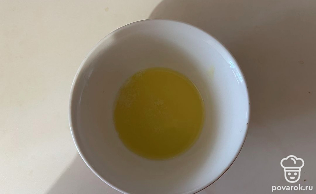 Сливочное масло растопите в микроволновке в течение 1 минуты.