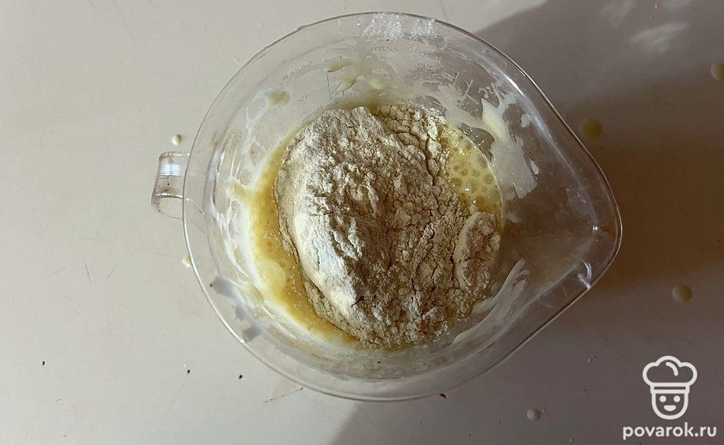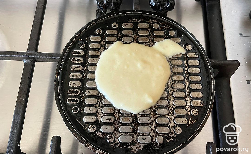 Вафельницу поставьте на огонь и порционно выложите смесь.