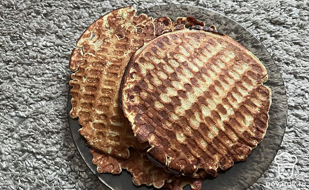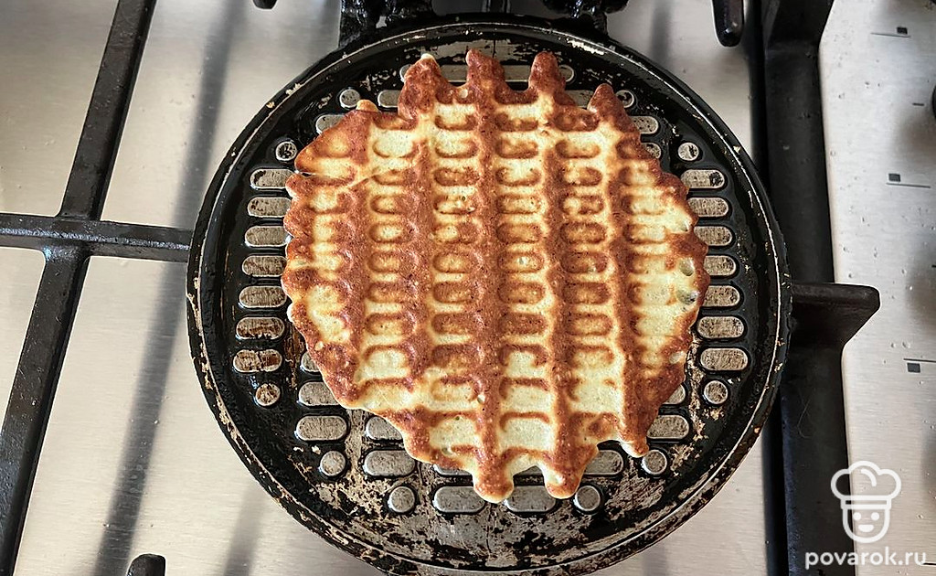 Каждую вафлю обжаривайте с двух сторон до появления золотистой корочки.