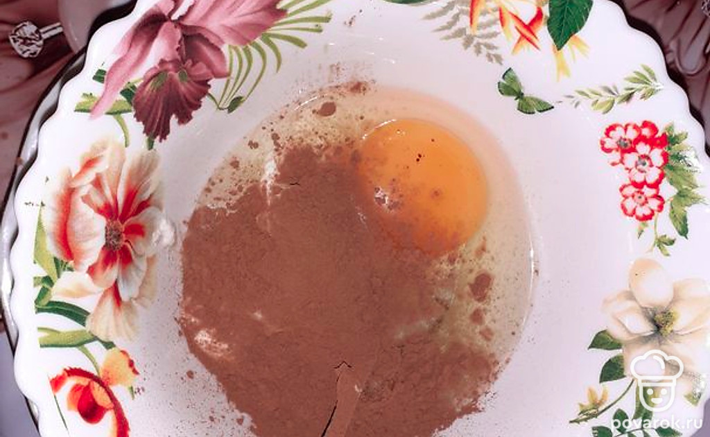 Разбить в миску яйцо, добавить какао.