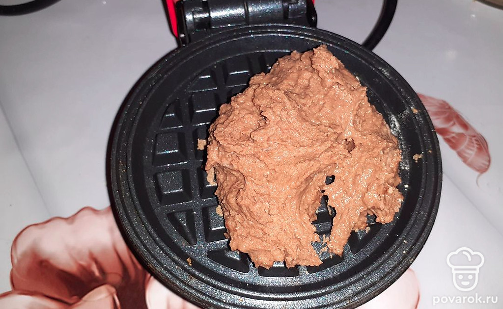Выпекать в электровафельнице 2-3 минуты.