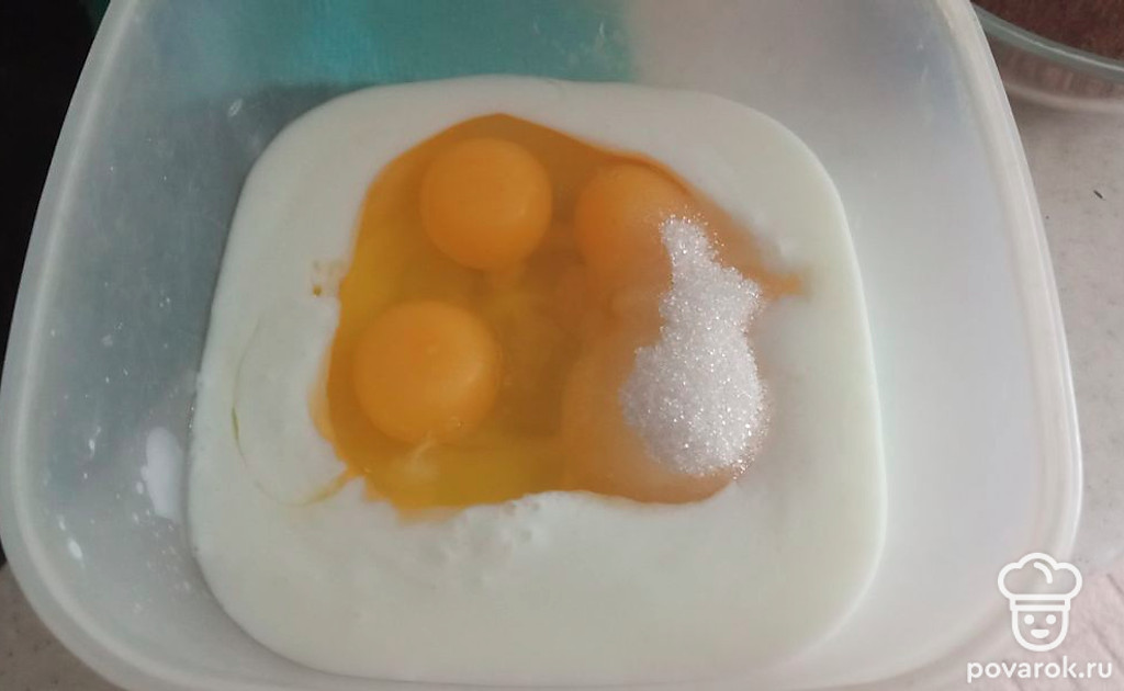 Соединяем яйца, молоко и сахар.