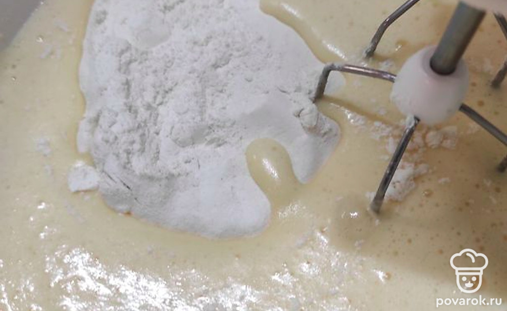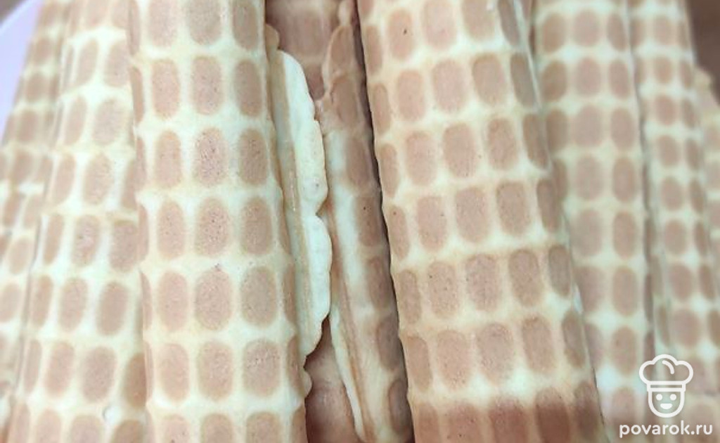 Муку просейте и перемешайте. Жарьте в вафельнице до готовности.