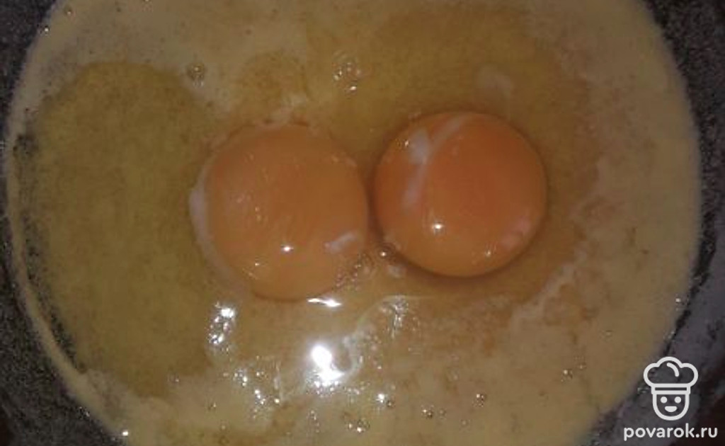 Добавьте в массу яйца, соедините ингредиенты.