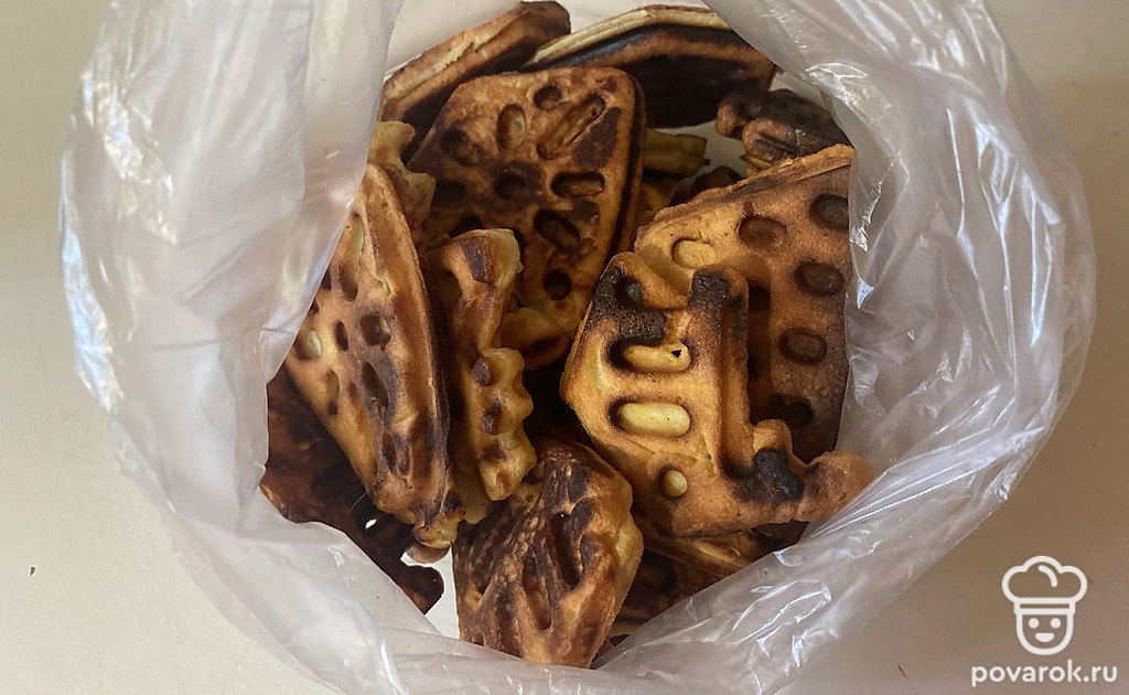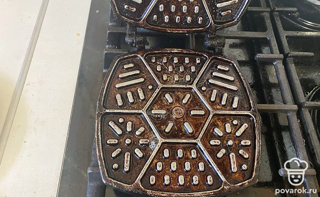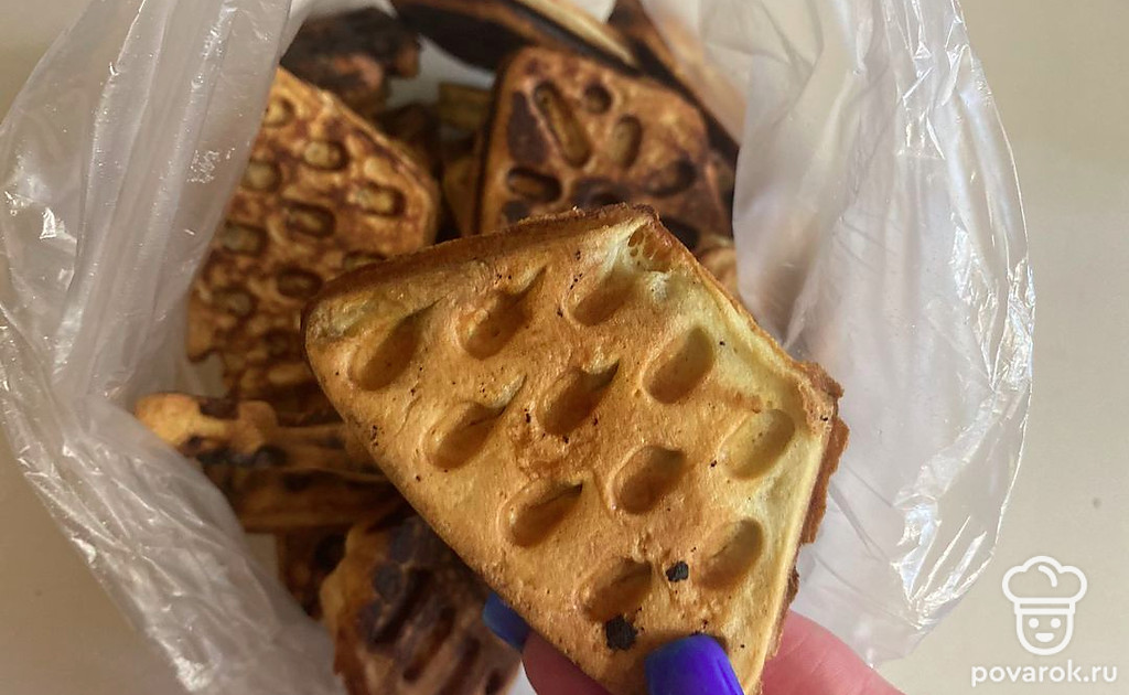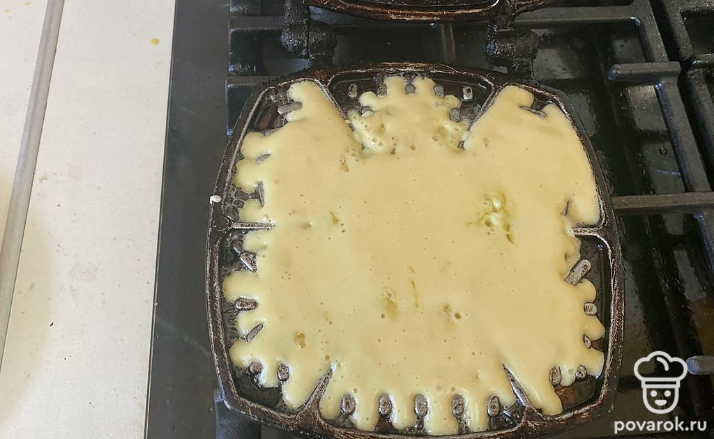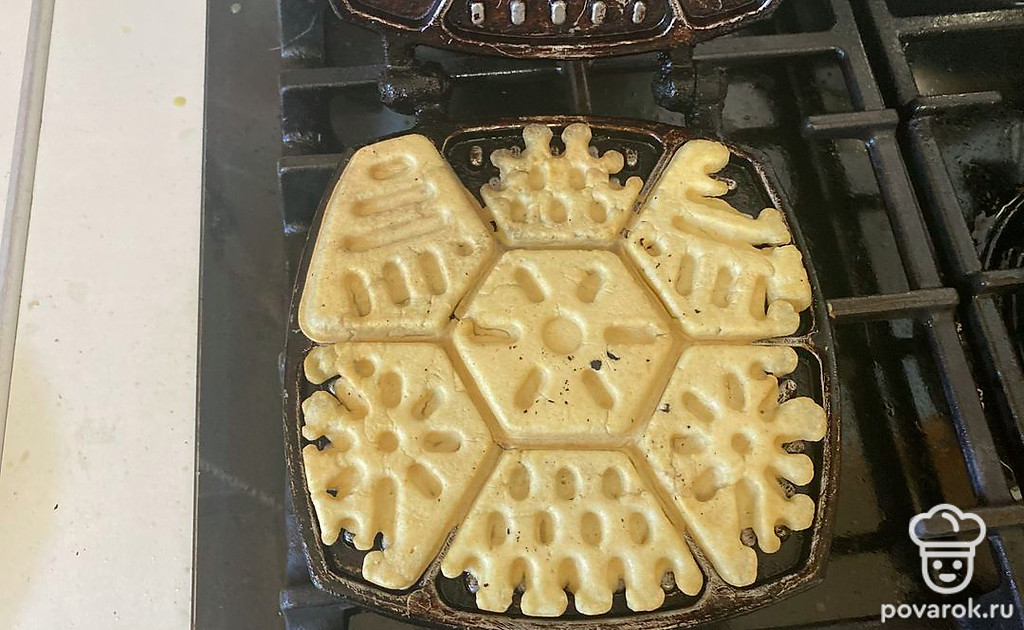 Обжаривайте вафлю с двух сторон в течении 3-4 минут.