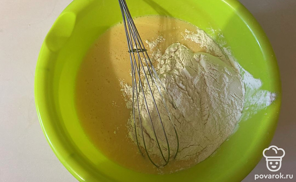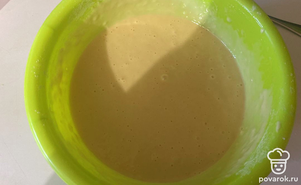 Перемешивайте все ингредиенты до исчезновения комочков муки.