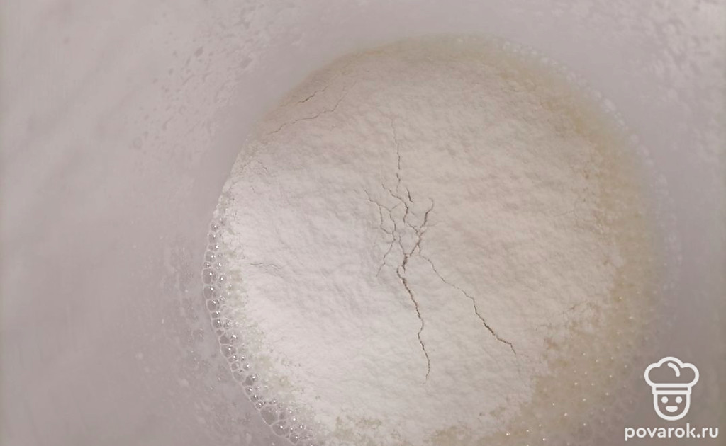 Постепенно добавьте муку и разрыхлитель и замесите тесто.